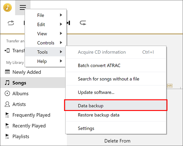 (Meny) längst upp till vänster på skärmen, och välj sedan [Säkerhetskopiering av data] på [Verktyg]-menyn.