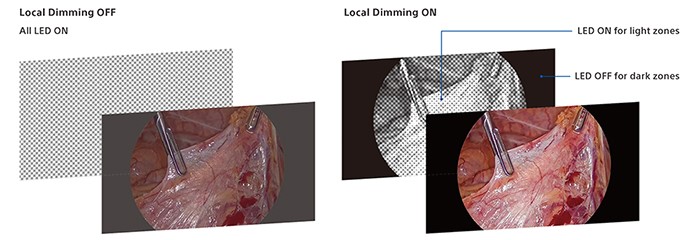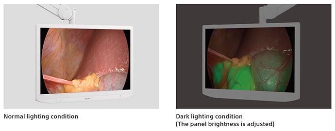 Den integrerade ljussensorn justerar automatiskt ljusstyrkan för att matcha omgivande ljusförhållanden, vilket gör LMD-32M1MD särskilt väl lämpad för ingrepp som utförs i miljöer med svagt ljus, t.ex. ICG-navigeringskirurgi.