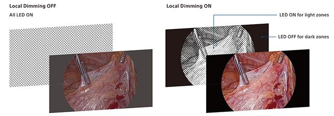 LMD-32M1MD är utrustad med Sonys avancerade Local Dimming Technology (Backlight Master Drive) för oöverträffad precision. Denna teknik styr på ett precist sätt panelens bakgrundsbelysning med en tät uppsättning av mini-LED-lampor, vilket ger en imponerande ljusstyrka och hög kontrast. Genom att oberoende styra LED-bakljuskällorna i ljusa och mörka zoner i bilden uppnår LMD-32M1MD avsevärt förbättrad svartåtergivning och ett kontrastförhållande på 1 000 000:1. Med en maxljusstyrka på över 1 850 cd/m² ger bildskärmen enastående visuell detaljrikedom och klarhet.