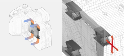 För att maximera damm- och fukttålighet har ytterligare försegling använts på kamerahusets alla sömmar och till batterifacket, och medieplatsernas lock har fått en ny design för att tåla tuffare utomhusmiljöer. Ett filter framför bildsensorn oscillerar med en ultraljudsfrekvens på 70 000 cykler per sekund för att ta bort damm från sensorns yta. Kamerahöljet är mycket hållbart tack vare en konstruktion helt i magnesiumlegering.