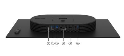 DisplayPort 2.1 med hög bandbredd och HDMI 2.1-kompatibla ingångar kan hantera de senaste videosignalerna så att du får en sömlös upplevelse med högre upplösning och en bildhastighet på upp till 480 Hz.[1] Hörlursuttag x1 (3,5 mm-uttag) [2] USB Type-A x2 (nedströmskabel) [3] USB Type-B x1 (uppströmskabel) [4] HDMI x2 (version 2.1) [5] DisplayPort x1 (version 2.1 UHBR10) [6] USB Type-A x1 (programvaruuppdatering)