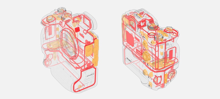 Kameragreppets fäste har samma tätningsmaterial som kamerahuset för att hålla damm och fukt ute. Det gör att kamerasystemet blir mer tillförlitligt överlag.